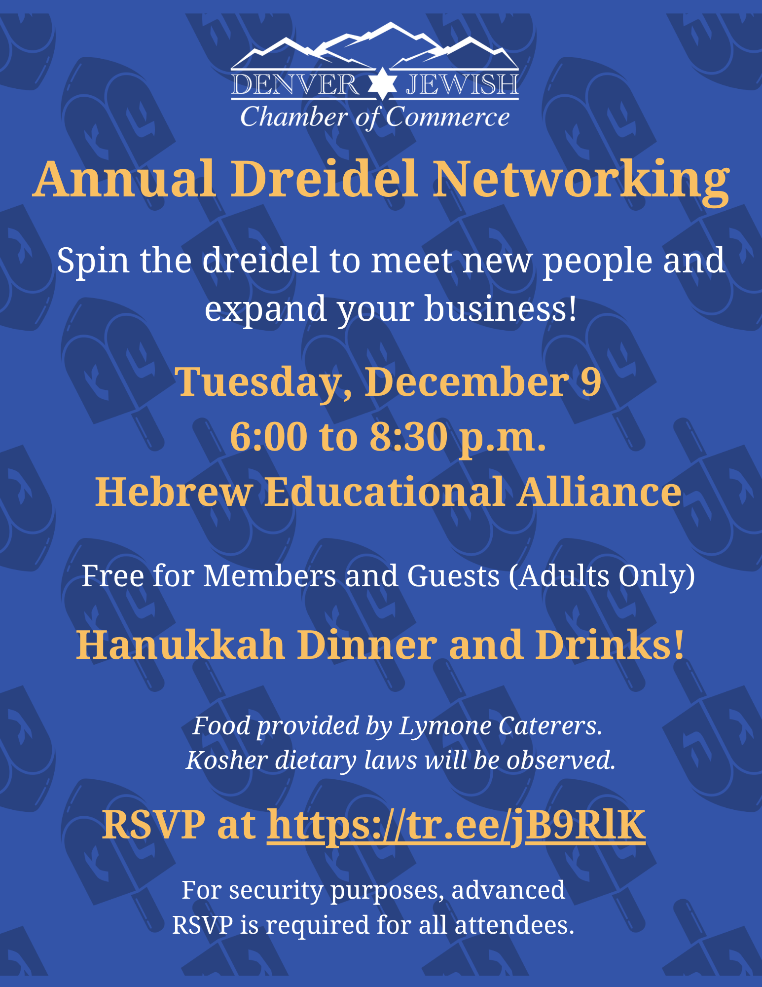 Join us for a night of fun, networking, and learning about the Denver Jewish Chamber of Commerce (DJCC) at our annual Dreidel Networking event. Spin the dreidel to meet new […]